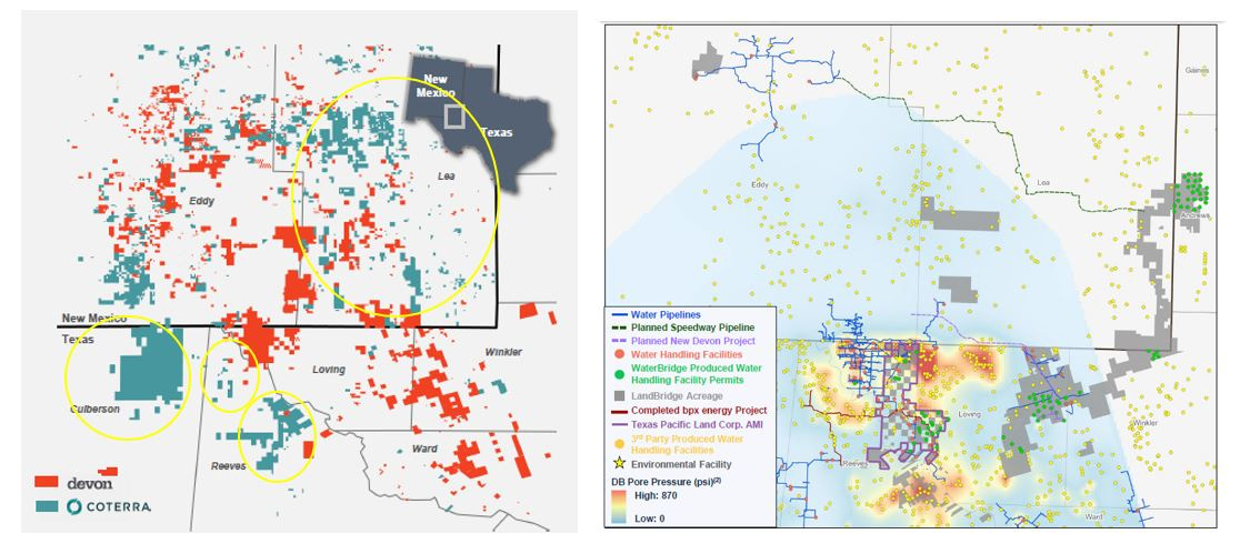 Let’s start with taking a look at the combined Devon / Coterra footprint and WaterBridge’s operating assets.